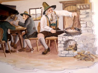 Das Kasermandl nahm die Muspfanne und begann ein "Miasl" zu kochen. Der Bursche wartete; er aß mit dem Käser. Doch das Mus schmeckte ihm nicht besonders vorzüglich; es hatte einen eigenartigen Geschmack.